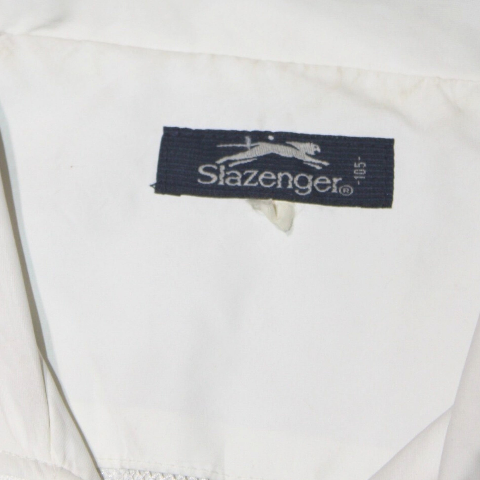 A clean early-2000s Slazenger jacket featuring a classic tennis-inspired colourway. Designed with a white body contrasted by mustard/yellow raglan sleeves, this piece reflects Slazenger’s long-standing heritage in British sportswear and court culture. Lightweight and functional, it works perfectly as an everyday windcheater with subtle branding throughout.