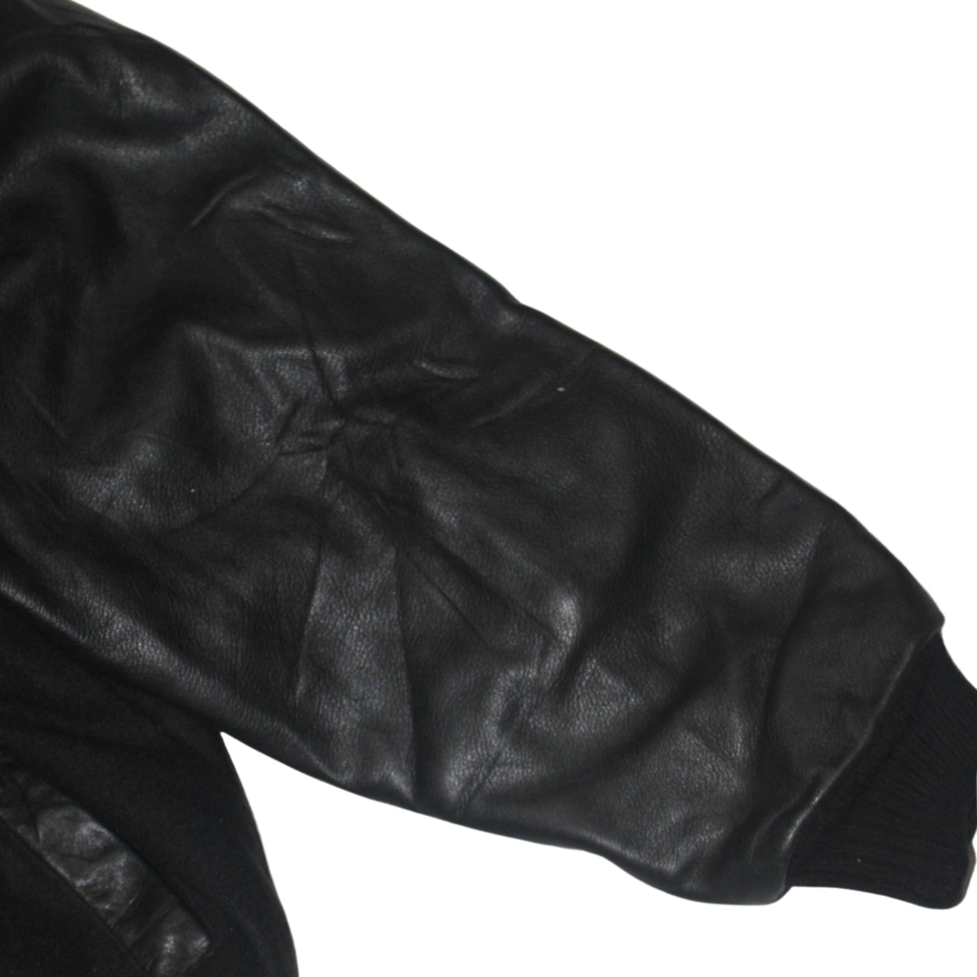 Condition: Great condition with no flaws. Wool body remains clean and structured, leather sleeves are supple with natural grain, embroidery sharp and intact, and ribbing and lining well preserved.