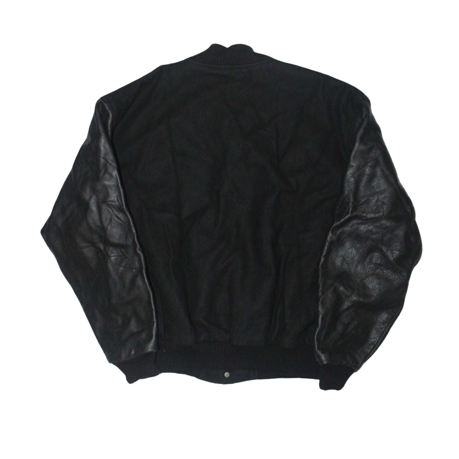 A clean, understated varsity jacket built with classic American craftsmanship and subtle corporate-era branding. Featuring heavyweight construction and minimal embroidery, this piece reflects the late-20th-century tradition of premium wool-and-leather jackets made for teams, companies, and regional programs—designed to last and age with character.