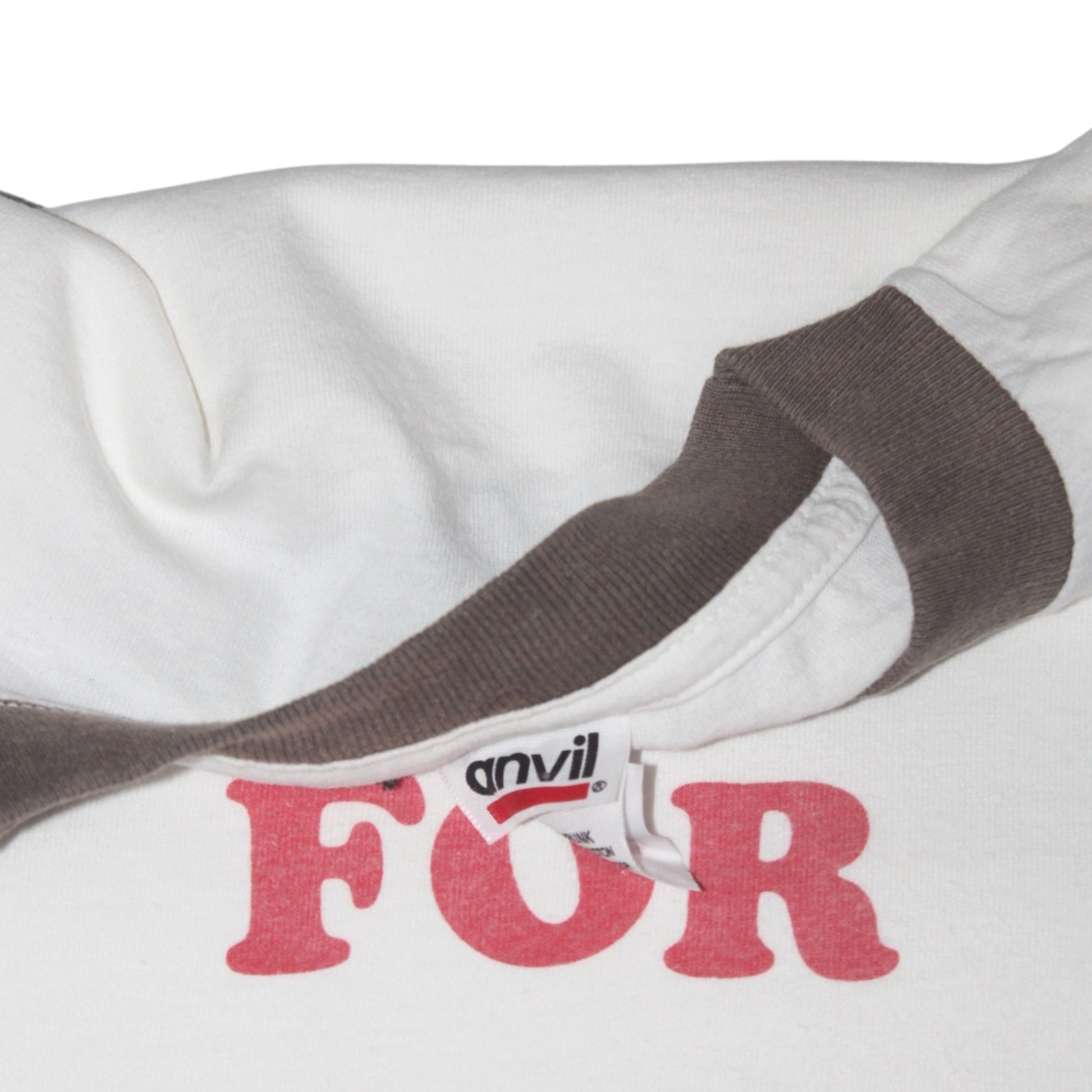 Instantly recognizable piece of 2000s pop culture, this tee immortalizes the cult-classic Napoleon Dynamite (2004) with its iconic “Vote For Pedro” print. Worn by Napoleon himself during Pedro’s student council campaign, the shirt became a symbol of the film’s offbeat humor and Y2K-era indie boom. This version comes on an Anvil ringer blank, a common choice for officially licensed merch in the mid-2000s, and carries all the nostalgia of when the tee first took over malls, Hot Topic racks, and high school hallways alike.
