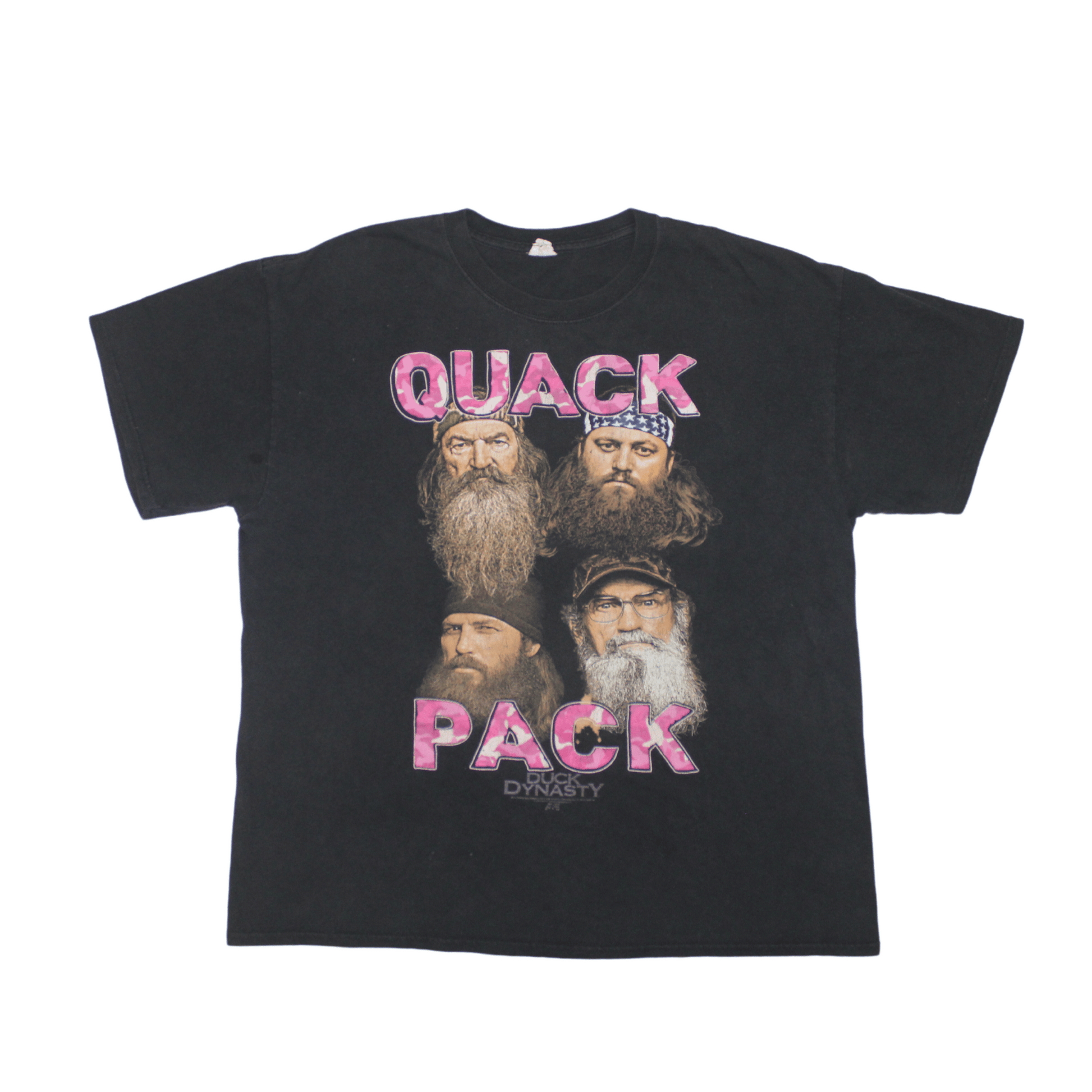 Details: Bold “Quack Pack” graphic from the hit TV show Duck Dynasty. Cracked front print with natural fading for that authentic worn-in feel.