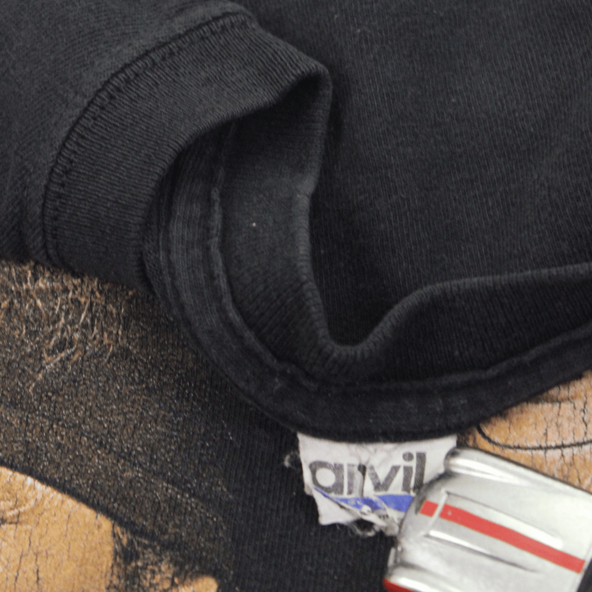 Condition: Gently faded with characteristic cracking on the graphic. No holes or stains — perfect wear for fans or collectors.