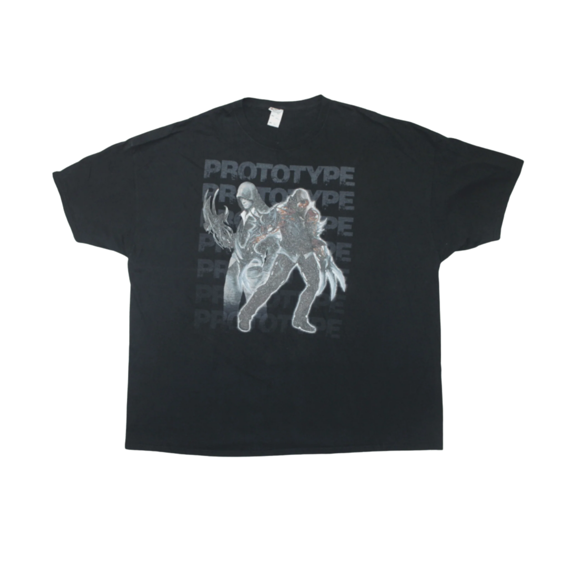 Official tee from the cult-classic action game Prototype, known for its dark sci-fi setting and shapeshifting anti-hero. Featuring Alex Mercer in full mutation mode, this one captures that gritty, post-apocalyptic energy from the late-2000s gaming era — a rare find for fans of old-school open-world chaos.