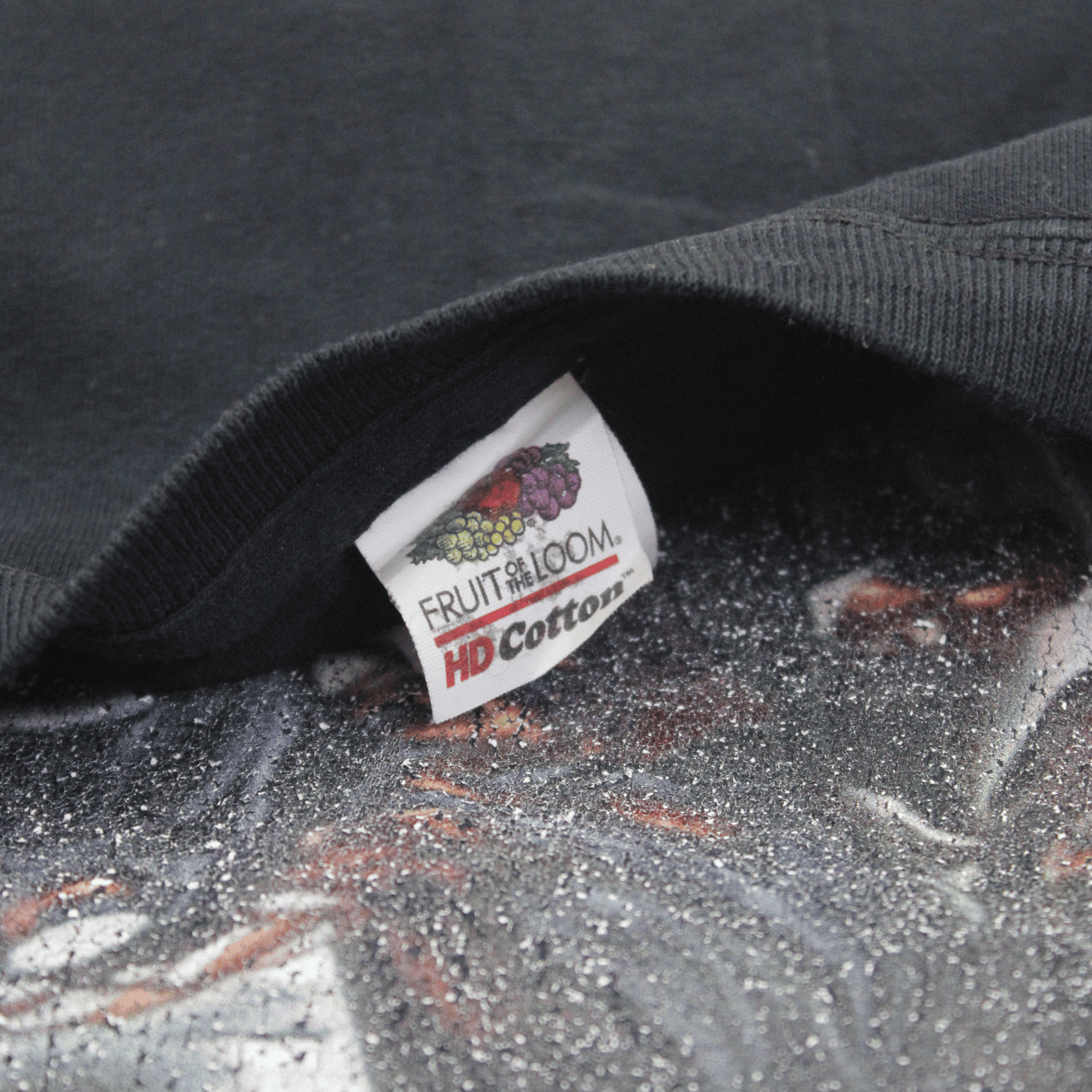 Details: Grunge-text “PROTOTYPE” stacked in the background; graphic print of two character poses with a distressed finish