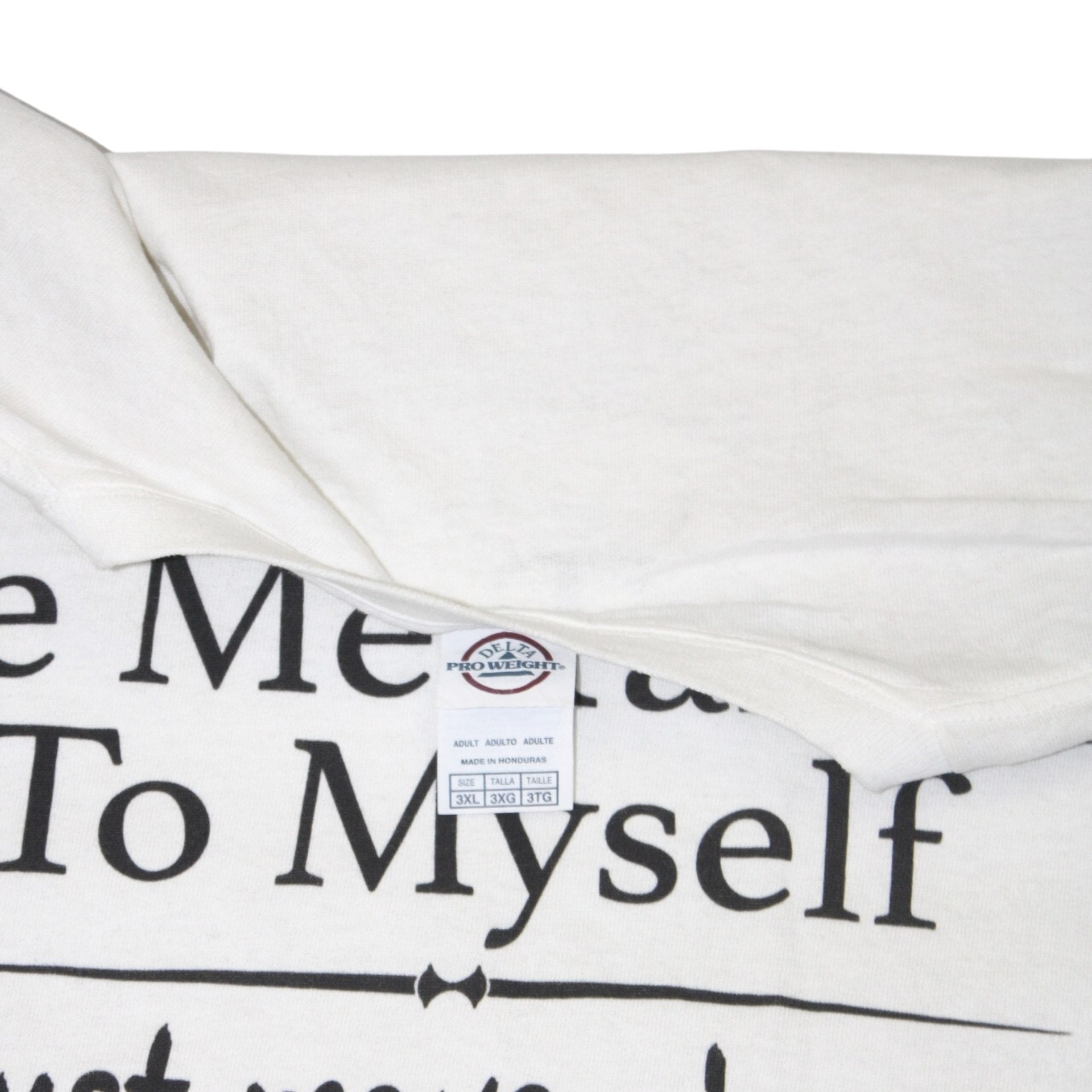A tongue-in-cheek novelty tee that captures self-employed humor perfectly with the bold statement: “If you see me talking to myself, just move along I’m self employed. We’re having a staff meeting.” A fun, oversized piece with strong 2000s novelty tee energy.