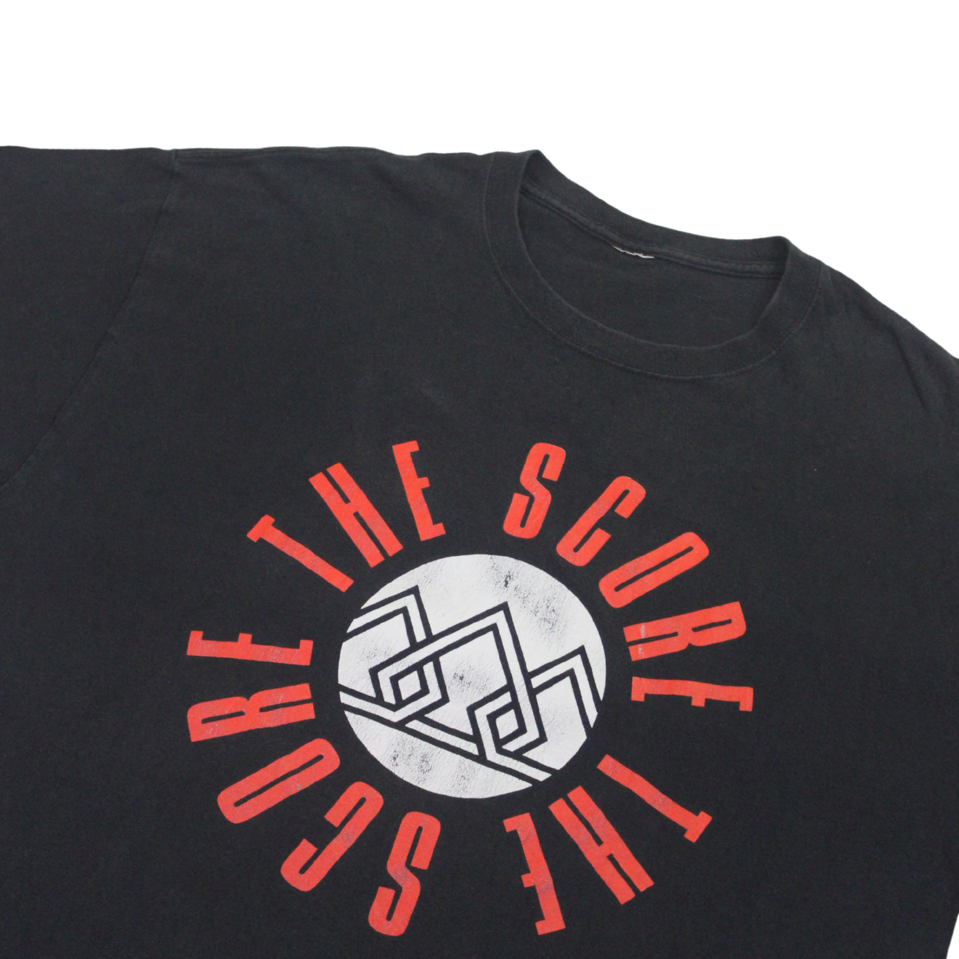 Tour-style graphic tee featuring “The Score” band logo on front and back.